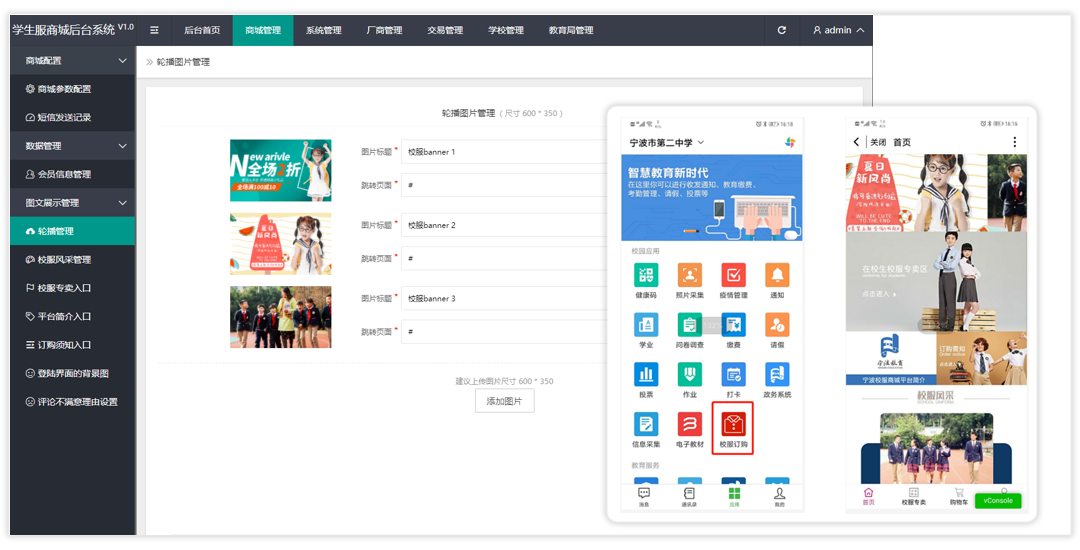 中小學(xué)校服訂購系統(tǒng)(內(nèi)嵌智慧教育APP)
