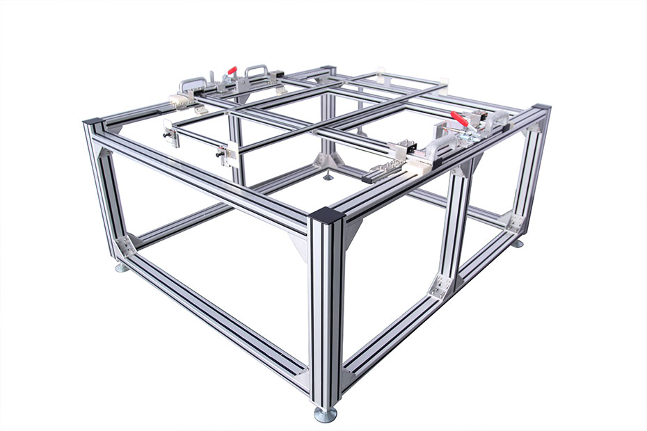 夾具是加工時用來迅速緊固工件,使機床、刀具、工件保持正確相對位置的裝置。工裝夾具是機械加工不可缺少的部件,用來迅速、方便、安全地安裝工件,應用機床夾具,有利于保證工件的加工精度、穩定產品質量;有利于提高勞動生產率和降低成本;有利于改善工人勞動條件,保證安全生產;鋁型材為框架,結合多種配件組裝,表面美觀大方,裝卸方便。