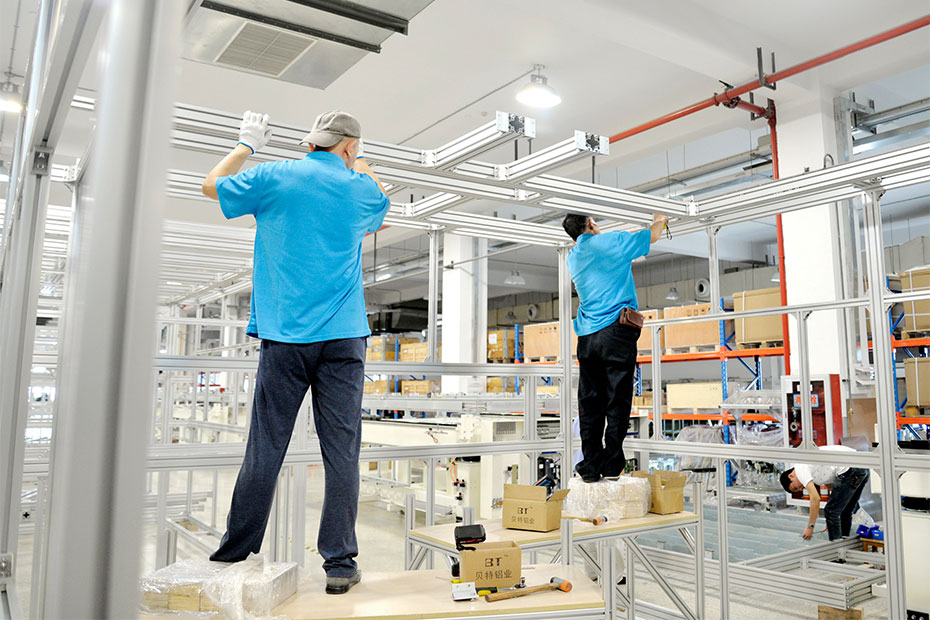 液晶屏生產線,是由鋁型材配合種類豐富的連接件組裝而成,組建簡單,應用靈活,不受部件外形和空間、場地大小的局限,可根據作業需要自由設計組裝。改造簡便,可隨時隨需擴展結構功能。材料可重復利用,節約生產成本,支持環保??蓮V泛應用于液晶行業,使生產安排更輕松。